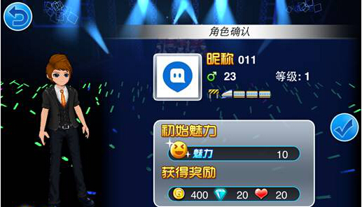 无论是男生还是女生,选择完形象和进行完性格测试后,游戏会再次确认大家的人物信息。而各位玩家老爷们所关注的魅力值和奖励也都是通过性格测试得到的。