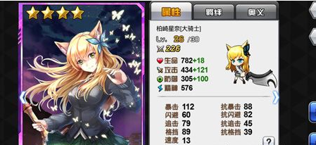 柏崎星奈在羁绊上也是全紫的,所以在后期的发展上还是比较有利的,就是纯骑士的阵容有点吃亏,可以考虑做些改变。在奥义上,柏崎星奈+1有130点闪避,再次确定了她的推图本质。在这个游戏中闪避没有格挡来的好用,不过在副本中还是比较有优势的。