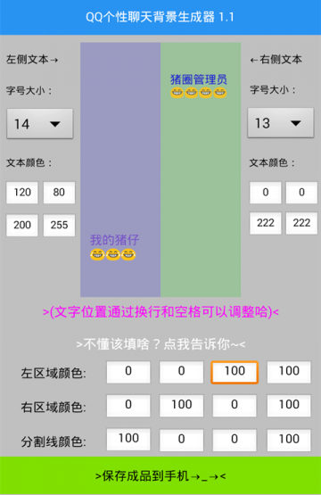 QQ个性聊天背景生成器是一款最近比较流行的一款安卓手机软件,可以用来生成一左一右左右分隔的聊天背景图片,软件使用很简单,只需几步就能亲手DIY出各种个性的QQ聊天背景。让聊天更炫更有个性!赶快来下载制作吧!