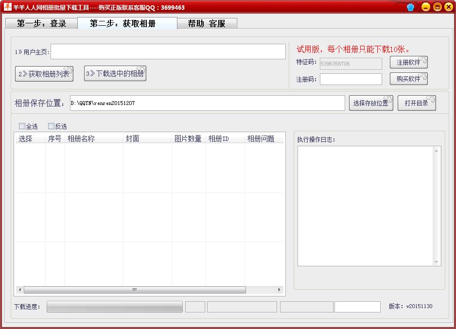 羊羊人人相册批量下载器专为人人网用户开发制作,帮助人人用户一键批量下载人人相册里的图片,支持下载自己的相册,好友相册以及非好友的公开相册!软件操作简单,下面有具体的操作说明,欢迎各位下载使用。