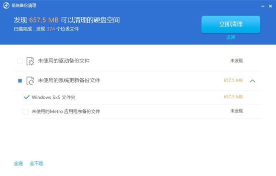 3.系统备份清理可清理来自修复漏洞后所产生的所有垃圾,保证系统干净清爽。
