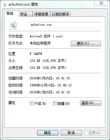 缺少此文件程序会提示:Component 'arbutton.ocx' or one of its dependencies not correctly registered: a file is missing or invalid