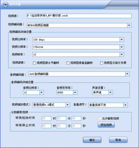 11.转换的视频可以在支持MP4的DVD碟机上播放;可以在支持3GP、MP4的手机上播放;