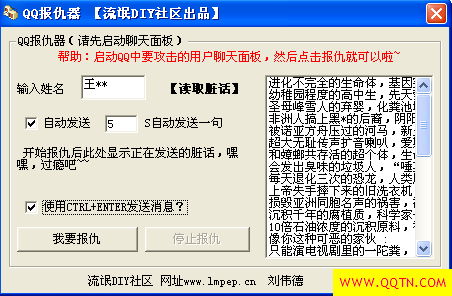 启动软件,打开要欺负的QQ聊天面板,然后设置一下攻击时间,坐着看他(她)投降吧~
