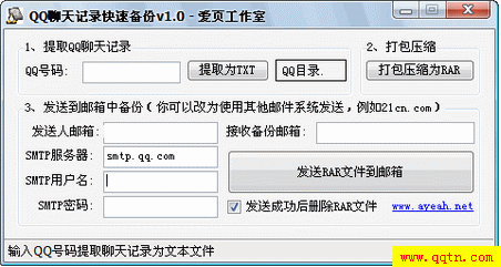 1、输入QQ号码提取所有聊天记录为TXT文件(包括普通聊天记录、群聊天记录、临时会话。。。)