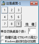 双心虚拟桌面可以让用户在一个电脑上建立多个虚拟桌面,建立的虚拟桌面每一个桌面都可以运行不同的程序,有时候有事需要离开电脑一会儿,那么又怕别人看到你电脑的资料,那你就可以使用这款双心虚拟桌面软件,能够在你离开的时候,切换成另外一个虚拟的电脑桌面,别人看的时候什么都没有,就像是刚开机一样。同样,可以用于其它很多地方,这些就看朋友们的自由发挥啦!