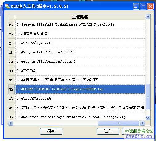 7、在自动弹出的DLL注入界面找到雷特小篆字幕安装程序进程下面的一个进程,