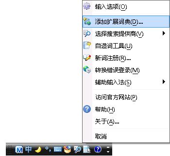 1.打开输入法功能菜单,选择”添加扩展词典”