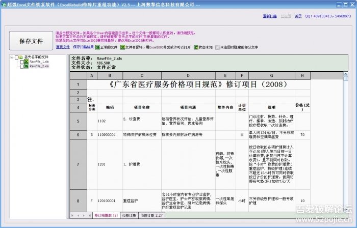 与国内目前唯一的Excel表格恢复软件的比较,差距立现,在 Excelrebuild 2.5扫描到的文件里,源文件的颜色都不见了,文件名无法显示,文件内容也有缺失。