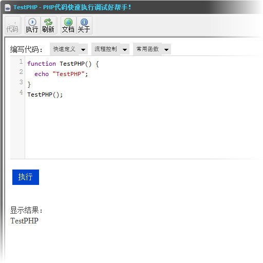 TestPHP是PHP代码快速执行调试好帮手!在Windows下开发PHP过程中,有的时候需要编写调试一段代码,Windows下又无法使用php -a,PHP新版的内置服务器打开调试编写起来又太麻烦,所以开发TestPHP!