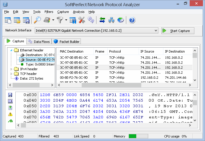 5、进来的数据包流,可以很容易地看到一个完整的数据交换的Telnet、POP3、SMTP、IMAP,FTP,HTTP和其他协议。