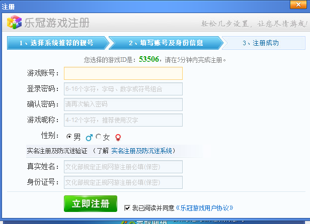 运行软件之后,进入软件登录页面,选择注册帐号,选择系统推荐的靓号。