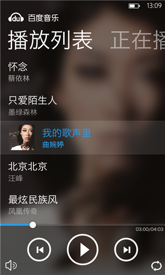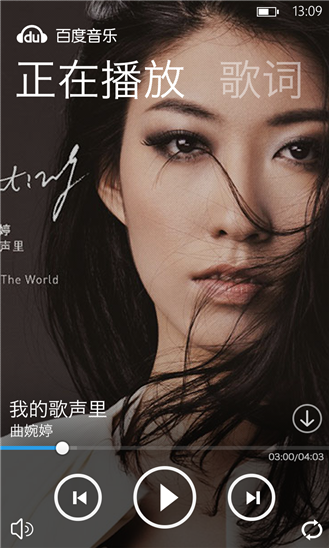 百度音乐全新推出完美契合WP系统风格的音乐应用,完美音质,流畅体验。在线音乐搜索,音乐排行版,音乐分类,歌手分类,新碟上架,本地音乐、在线音乐、个人音乐,页面内容更加丰富; 歌曲播放页功能更强大、界面更美观;百度音乐WP版,让你听到极致。