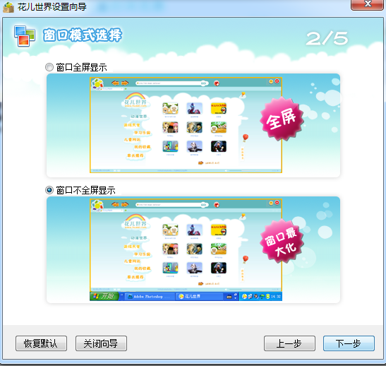 进行窗口模式选择。