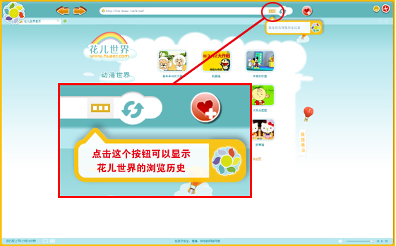 1:点击这个按钮可以显示花儿世界的浏览历史