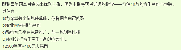 酷狗繁星主播要求