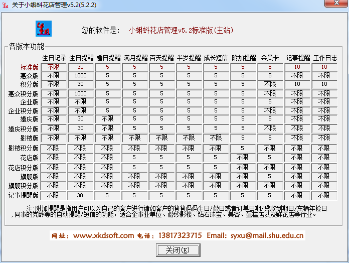 7) 在标准版、惠众版、企业版等现有版本基础上扩展出积分版、婚庆版、影楼版、花店版、旗舰版和记事提醒版;