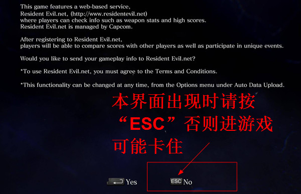 一、出现下图界面时请按“ESC”,否则进游戏可能会卡住。