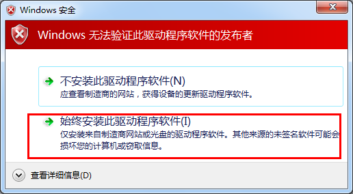 4.安装到最后,win7状态下会填出windows安全界面,请选择“始终安装此驱动程序软件”