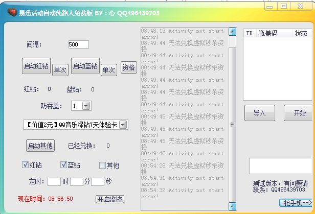 易迅活动自动纯路人免费版是一款可以在易迅可乐瓶盖兑换活动中帮助用户抢换QQ钻的工具,抢换蓝钻、红钻、QQ会员、QQ音乐、欢乐豆、手机等,最近的易迅这个活动非常的火,都在抢,在多款抢换软件中还算不错的。
