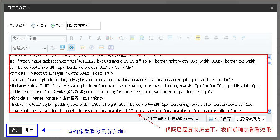 第四:编辑好后,我们点一下预览效果看看是不是我们要的效果,这里预览的效果,和我们发布的效果是一样,测试后再复制到自己的网店模块中就行了!