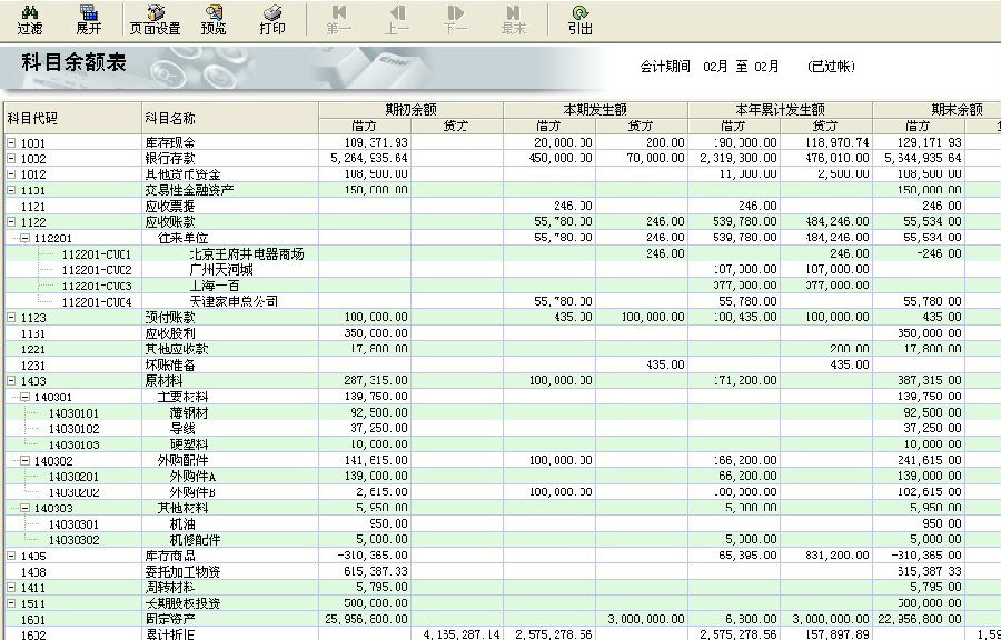 2、会计帐薄中总帐科目与明细科目树型展开显示。