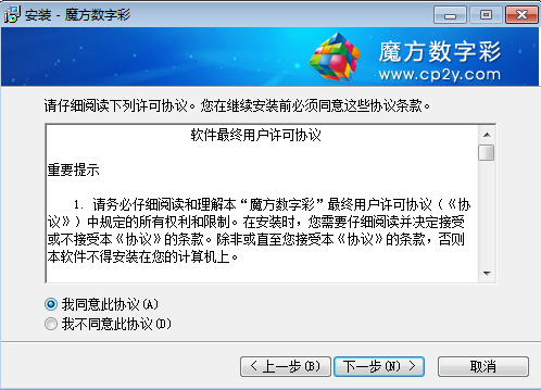 解压下载压缩包,运行安装文件,进入魔方数字彩安装向导,单击下一步进入安装
