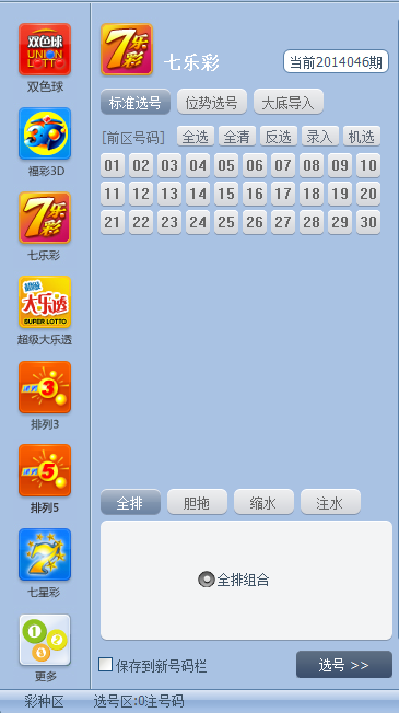 七乐彩:标准选号、位势选号、大底导入