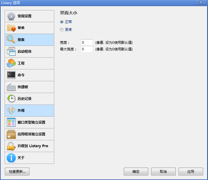 外观:界面大小、宽度、最大高度
