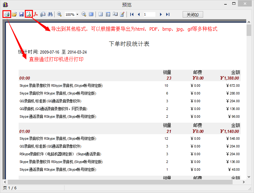 报表的打印以及导出,可以方便的对报表进行打印和导出为其他格式的文件