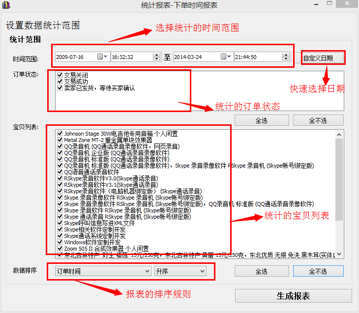 • 淘宝卖家销售订单统计系统1.1 绿色版
