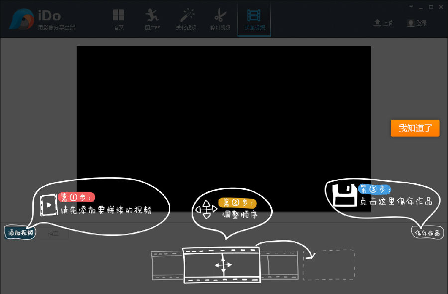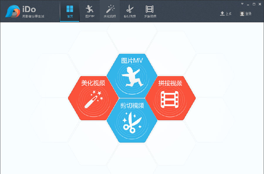 优酷iDo编辑视频功能非常强大,能够将图片制作成视频MV,还能够剪切视频、美化视频、拼接视频,并支持视频上传到优酷土豆视频网,还能通过微信、微博、QQ空间与好友分享。