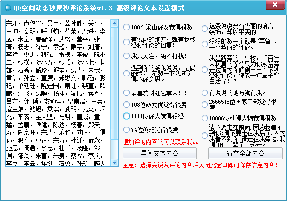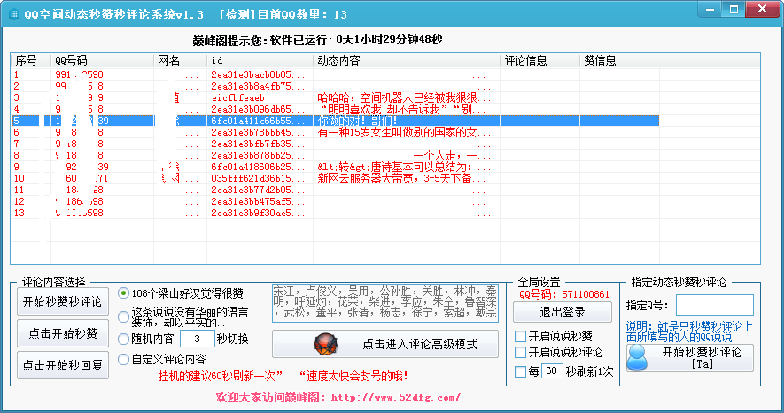 秒赞秒评论系统主界面,自动检测目前QQ数量