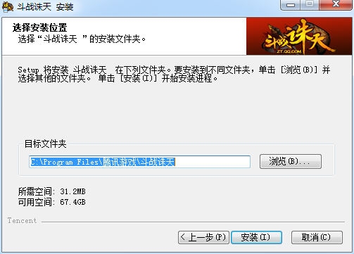 3、选择斗战诛天登录器安装位置,可以通过浏览选择不同的安装位置。需要至少31.2MB磁盘空间。