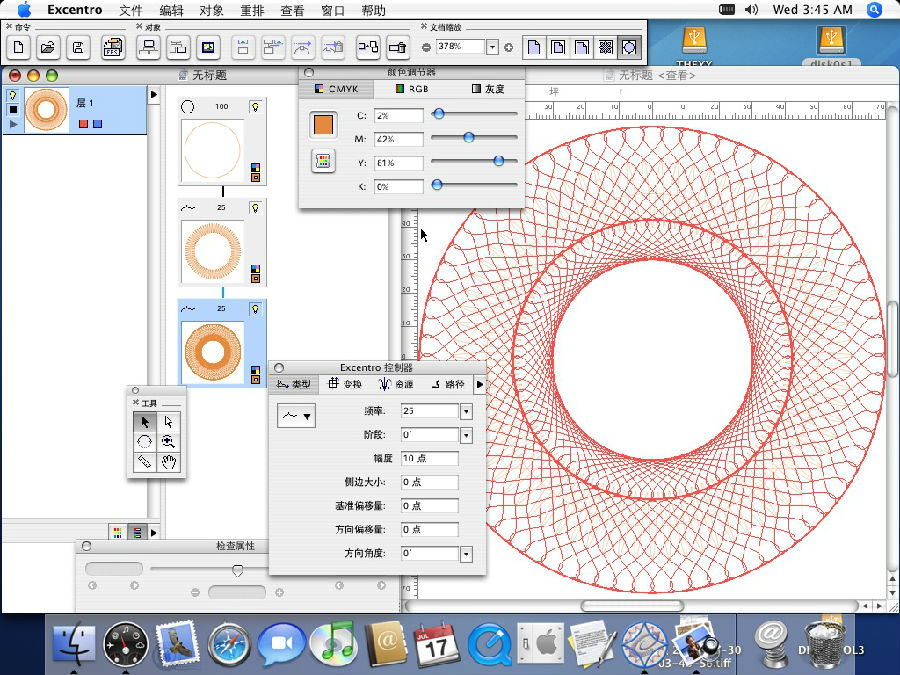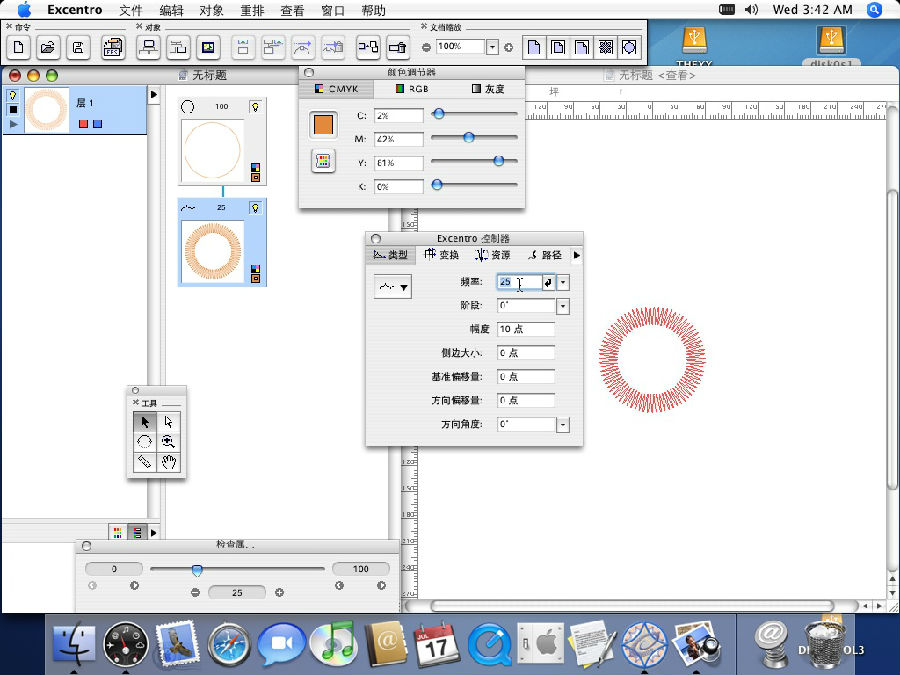 1、Excentro界面很多方面与adobe相似,比如图层方面,开与关,线条粗细,颜色等,感谢汉化作者,软件那些操作变换中文一看就清楚。