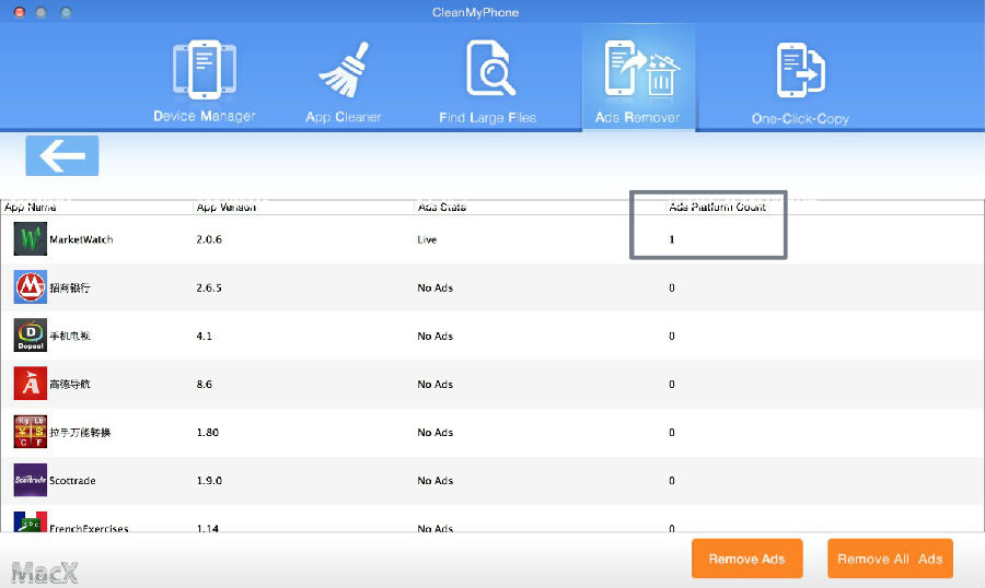 对于这个软件最有意思的还是 Ads Remove , 广告移除.