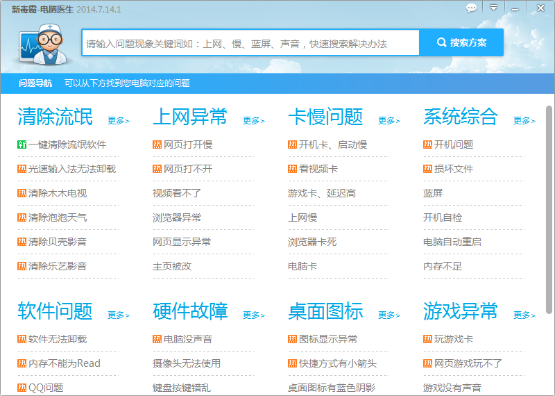 新毒霸小工具集合里面包含了十几款新毒霸里常用的小工具,用户无需安装新毒霸,也不需要下载多个单文件版,在一个软件中就能使用多个软件。本工具合集包括开机加速、系统急救箱、垃圾清理、软件管理、LSP修复、系统医生、隐私清理、系统盘瘦身、密码专家、天气助手、快速搜索、进程管理等,都是最常用的,欢迎下载收藏!