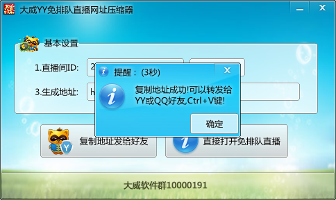 2、这款工具很多万人直播都在用,支持一键生成与复制,转发QQ,YY等平台
