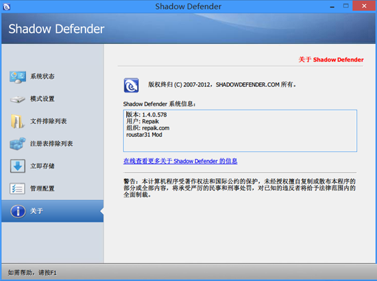 2、Shadow Defender永久注册码