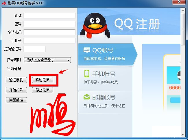 鹏哥QQ靓号枪手最新QQ靓号批量注册机来了,由于腾讯开放了qq靓号注册,疯狂注册qq靓号又开始了。之前本站发布过萧启灵qq靓号注册机1.0和2.0版本。本次为大家带来鹏哥制作的qq靓号注册机。弥补了不足之处,注册qq靓号高效速稳定,帮助你快速获得心仪的QQ靓号。