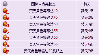 当您在焚天中角色等级达到40级,即可一键点亮焚天图标!