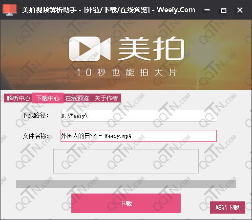 在编辑框中填入你需要解析的美拍链接,即可获得:视频名称;视频简介,视频图片截图,视频上传时间,视频下载外链地址