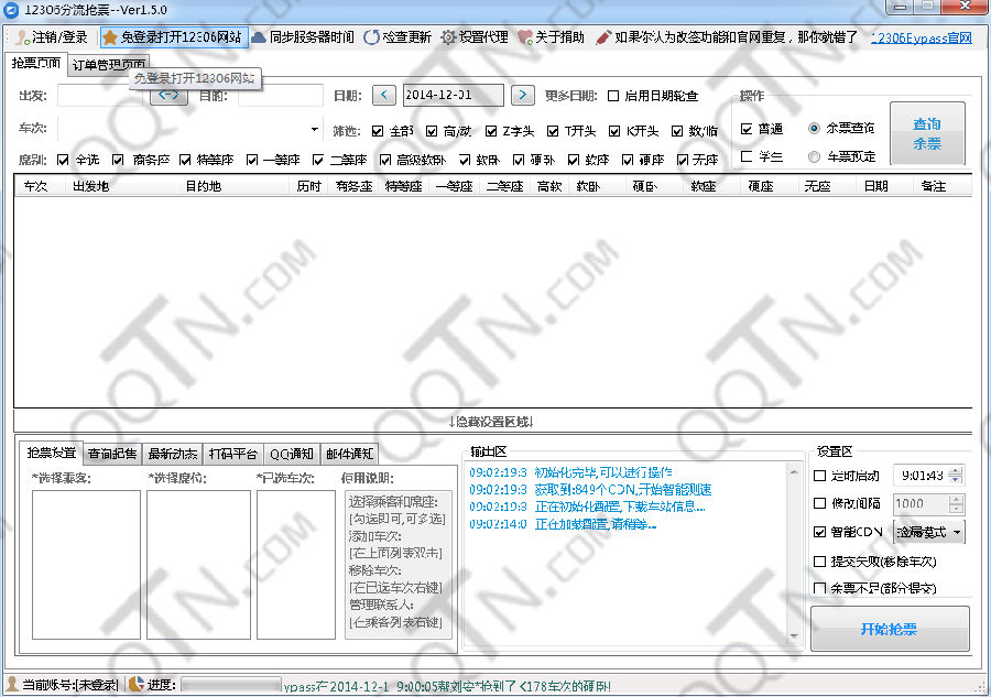 12306分流抢票软件拥有余票查询、自动刷票、订票成功QQ-短信-声音提醒、软件完全免费,全程自动抢票,自动识别验证码,多线程秒单、稳定捡漏,支持多天、多车次、多席别、多乘客等功能!分流,不只是技术上的争斗.更多人性化给力功能等你来体验!