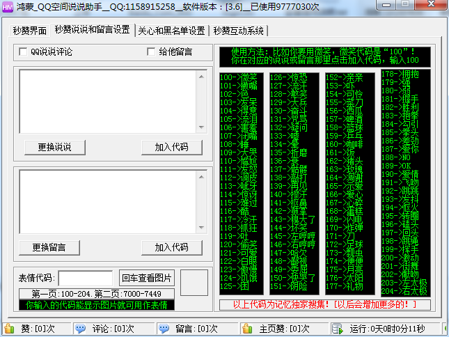 你在对应的说说或留言那里点击加入代码,输入100