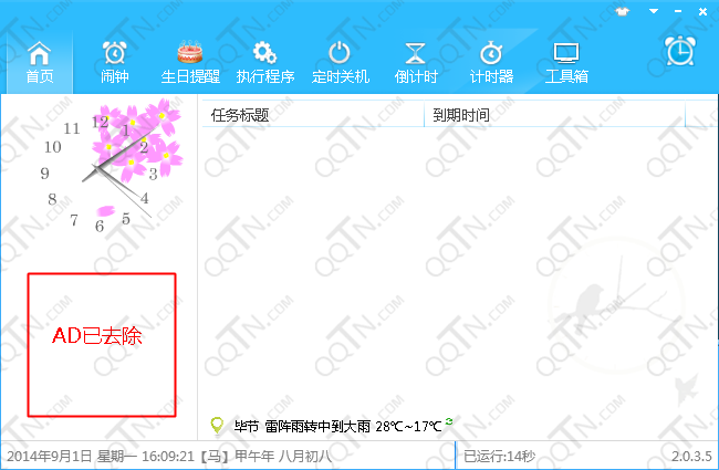 美捷闹钟去广告版,去除了软件主界面展示广告,将快捷键2345链接修改为百度和本地搜索。本软件小巧精致,拥有闹钟、生日提醒、定时关机、倒计时、计时器、天气预报、万年历等多项实用功能。小小工具,带给你更多方便!