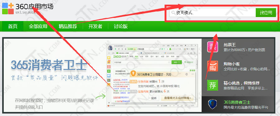 4、以下就是360应用市场提供夜间模式插件,我们选择官方提供的那款