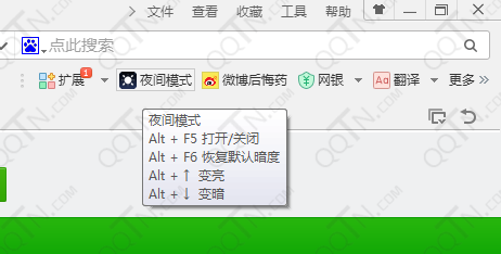 8、我们可以根据夜间模式插件提示的开启调整快捷键进行使用即可。