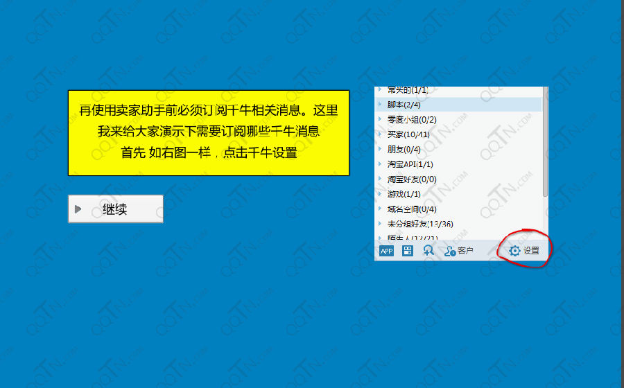 1、在使用卖家助手前必须订阅千牛相关消息,如下图所示,点击千牛设置