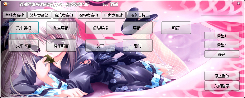 逍遥网络音效辅助软件是目前为止音效素材最多、最好用的一款音效辅助软件。软件提供了主持类音效、战场类音效、音乐类音效、警报类音效、叫声类音效等几大类音效。软件完全免费使用,同时可以自由调整音效的音量大小。