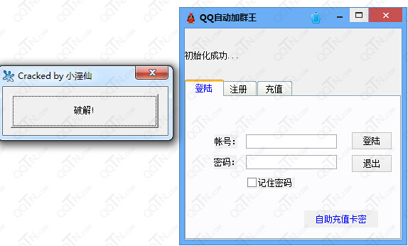 1、下载解压软件,进入软件文件夹,打开qq自动加群王主程序和破解工具,然后点击破解
